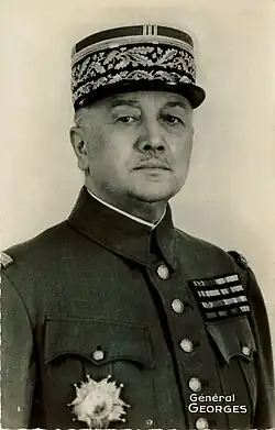 Alphonse Joseph Georges (French pronunciation: [alfɔ̃s ʒozɛf ʒɔʁʒ]; 15 August 1875 – 24 April 1951) was a French army officer. He was commander in chief of the North-Eastern Front in 1939 and 1940.[1] Opposing the plan by supreme commander Maurice Gamelin to move the best Allied forces into the Low Countries, he was overruled. Georges tried to allow as much initiative to his subordinates as possible to improve operational flexibility.