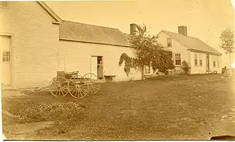 Private Joseph Leavitt (1757–1839) was an early settler of Maine, who moved to what was then the frontier of Massachusetts after serving three months in the Continental Army at the outbreak of the Revolutionary War, and then declaring that he was unable to bear arms in conflict. The conscientious objector declared that he would move to Maine and survey lands for grants to former soldiers. On account of his pacifist sentiments, 'Quaker Joe,' as he became known for the rest of his life, was awarded with a house lot next to the new Turner meetinghouse when it was eventually built.[1]