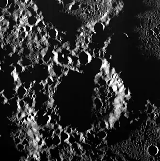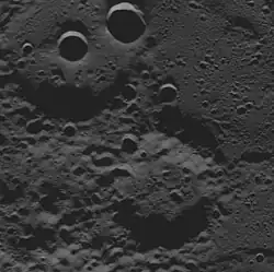 The southern portion of Josetsu is in permanent shadow, and within the shadow is a topographic low called a "small‐scale cold trap" where water-ice may be exposed at the surface.[2]