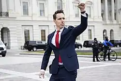 In December 2020, Hawley became the first senator to announce plans to object to the certification of Joe Biden's victory in the 2020 United States presidential election, and led efforts in the Senate to do so.[5][6][7][8][9] Although he did not directly encourage the January 6 attack on the U.S. Capitol, some observers perceived his actions as inflammatory.[10] In January 2021, Hawley said he did not intend to overturn the election results.[11][12]