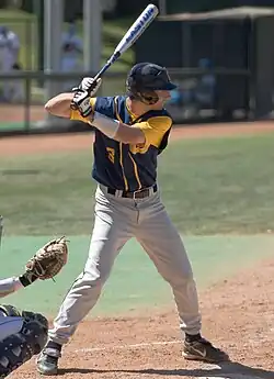 In 2008, his final year, he batted .379/.500/.723, with 18 home runs in 195 at-bats.[24][25] He also set the school hitting streak record, with 27.[17] That year he was a Baseball America first team All-American (joining among others future Mets teammate Ike Davis).[26] He was also a Rivals.com second team All American, Collegiate Baseball Louisville Slugger third-team All-American, and first-team All-Pac-10.[27][28] He is 5th all-time for the school in career hits (246) and total bases (381), 6th in RBIs (153), 8th in career walks (119), 9th in career home runs (29; tied with Jerry Goff), and 3rd for the school in season-best slugging percentage (.723; 2008) and home runs (18; 2008).[29] He graduated with a degree in political science.[10][17]