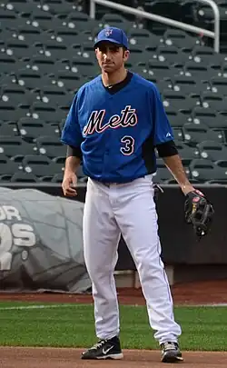 In 2009, he hit .284/.385/.418 for the Savannah Sand Gnats in the A-level South Atlantic League, with 38 doubles and 73 walks.[24] He was voted a SAL Mid-Season All-Star.[31] Still, he recalled years later, "You just look around and you're like, 'I'm really far from the big leagues.' I used to tell myself in Low A, 'Well, I'll just go to law school.'"[32] He closed out the season by playing seven games for the St. Lucie Mets in the A+ Florida State League, batting .364/.464/.591.[30]
