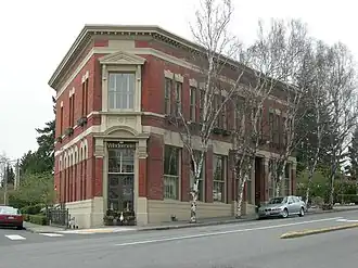 The Joshua Sears Building is a historic building in Kirkland, Washington, located at the northwest corner of Market Street and Seventh Avenue, Kirkland's historic commercial core. It was built in 1891 by Boston philanthropist and capitalist, Joshua Sears, who was heavily invested in Peter Kirk's Great Western Iron and Steel Company and was the town site's largest landowner. As a result of the Panic of 1893, the steel mill and the bank intended to occupy this building never opened but the Sears building survives today as a reminder of what might have been in Kirkland. It is an early example of Beaux-Arts architecture in the Northwest, where Victorian and Romanesque Revival styles were still predominant in commercial buildings. On August 3, 1982, it was added the National Register of Historic Places. In December 2015 the building was purchased by local attorney Simeon Osborn and his wife Monica Hart, who stated they plan to keep the current business and residential tenants.[2]