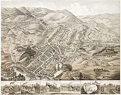 The Battle of Lexington, the first military campaign of the American War of Independence, was fought about two years and a half before the incorporation of the town.[3] The town raised men for the war, and provided food to the Continental Army and the militia.[3] Regiments included those of Col. John Paterson, later Major General and Congressman, and Col. Benjamin Simonds of Simonds' Regiment of Militia.[3] Some of the town's soldiers were engaged in General John Stark's regiment at the Battle of Bennington, and participated in the campaign that brought the surrender of British General John Burgoyne.[3]
