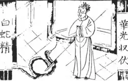 ![]() Ming dynasty illustration of Huaguang subduing the white snake | |