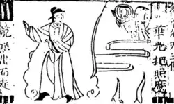 Yu Xiangdou is credited with writing and publishing the novel during the Wanli era although much of its material probably came from earlier sources such as the missing opera Huaguang xian sheng (華光顯聖) or Huaguang Manifests His Holiness.[16] Huaguang's descent into hell to save his mother, for instance, recalls the Chinese Buddhist fable Mulian Rescues His Mother.[17] Some scholars, for instance Liu Ts'un-yan, have gone so far as to suggest that Yu merely republished an earlier version of the novel.[18][m] In any case, Yu also paired several passages in the novel with his own poems.[19]