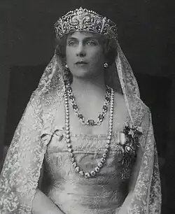 Portrait of Princess Frederica of Hanover wearing the Prussian tiara (c. 1930–36).