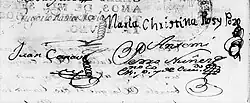 Juan Canaveris was married to Catalina Bernarda de Esparza, a noble maiden,[48] daughter of Juan Miguel de Esparza and María Eugenia Sánchez.[49] His wedding was celebrated on May 4, 1772, in the Cathedral of Buenos Aires by José Antonio Acosta, a distinguished parish priest of the city.[50]