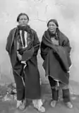 ![]() Juan Mirabal wears moccasins, leggings, shirt, scarf tied around neck, and is wrapped in a blanket. G. Mirabal wears moccasins, leggings, a dress, and is wrapped in a blanket. | |