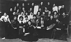 The hard-fought battle was a challenge to the perceived masculinity of Glasgow's leading art institutions. In the catalogue, Burkhauser commented that “Young women in the arts have been starved for stories of other women, tales of these maverick sisters whom they might learn from [...] We followed in one another’s footsteps, knocking on doors, asking the same questions, rediscovering fire, the wheel, electricity, because there was no record of our past.”[5] In this respect, the 'Glasgow Girls' exhibition is deemed a triumph in the course of art history for its promotion of Scottish female artists. Burkhauser's dedication to its success was evident in the use of her own property as the insurance to bring Margaret Macdonald's painting The Opera of the Seas (1915) to Glasgow from Germany.[6] A section of this painting appears on the cover of the published exhibition catalogue.