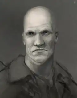 Judge Holden is a fictional character from the novel Blood Meridian by Cormac McCarthy, and is based on a historical person who partnered with John Joel Glanton as a professional scalp-hunter in Mexico and the American Southwest during the mid-19th century.[1] To date, the only source for Holden's character in Blood Meridian is from Samuel Chamberlain's My Confession: Recollections of a Rogue, an autobiographical account of Chamberlain's life as a soldier during the Mexican–American War. Chamberlain described Holden as the most ruthless of the roving band of mercenaries led by Glanton, with whom Chamberlain had traveled briefly after the war: "[he] had a fleshy frame, [and] a dull tallow colored face destitute of hair and all expression";[2] "a man of gigantic size"; "by far the best educated man in northern Mexico"; "in short another Admirable Crichton, and with all an arrant coward".