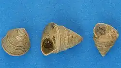 | Shell of Jujubinus turricula (specimen at the International Fossil Shell Museum) | |