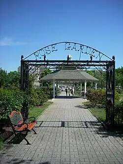The addition of a rose garden to the park originated with H.C. Schuppel in 1935, a chairman of a rose garden club called the "Cut Worms." Work on the project began in earnest in 1939 with a total of 2800 roses planted, some from Villa Nurseries in Portland, Oregon. The Rose Garden was officially dedicated that year.
