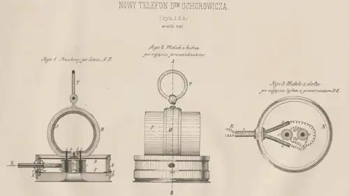 In 1885, on several occasions, he demonstrated his own improved telephones. In Paris he connected the Ministry of Posts and Telegraph building with the Paris Opera, 4 kilometers distant.[6] Ochorowicz received a French patent for his technology (168,569. Brevet de quinze ans , 29 avril 1885 ; docteur Ochorowicz, à Paris , boulevard Saint-Germain , nº 24. - Système téléphonique reproduisant la parole à voie haute.), and Bruno Abakanowicz produced Ochorowicz's telephones for some 20 years.[7][4]