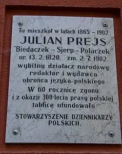 - ^ a b c d Kulpiński, Henryk (1994). Julian Prejs ojciec ludowej prasy pomorskiej. Kalendarz Bydgoski. Bydgoszcz: Towarzystwo Miłośników Miasta Bydgoszczy. pp. 247–250.