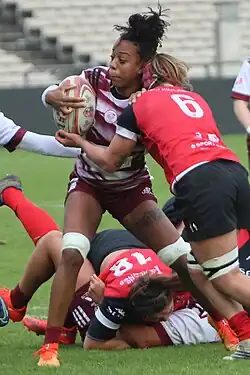 As of September 2022, she had 26 international caps and was recognised as the fastest third line.[2] In 2017 against England during the Women's World Cup, she was praised for her defensive solidity.[3] She was named in France's team for the delayed 2021 Rugby World Cup in New Zealand.[4][5]