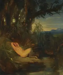In 2005, three paintings by Carl Blechen and a watercolor by Anselm Feuerbach, which had previously been on loan from the Federal Republic of Germany in various museums, were restituted to the Freund heirs.[14] [15] The watercolor The Funeral of the Court Jester by Anselm Feuerbach was previously in the Historical Museum of the Palatinate in Speyer, Blechen's painting Sleeping Faun in the Reeds in the Wallraf-Richartz Museum in Cologne, the painting Mühle im Tal (also mill in Saxon Switzerland) in the Electoral Palatinate Museum of the City of Heidelberg and Romantic Landscape with Ruin (also dawn - ruin) in the Westphalian State Museum in Münster. After restitution to the Freund heirs, Mill in a Valley was sold at Sothebys in 2009.[16] The museum in Münster, which has since been renamed the LWL Museum for Art and Culture, was able to repurchase Blechen's painting from the heirs in 2010.