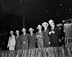 - Houston welcomed the Mercury astronauts with its Fourth of July parade, followed by a barbecue at the Sam Houston Coliseum featuring a performance by burlesque dancer Sally Rand. This event would form the basis of a major set piece in Tom Wolfe's 1979 book The Right Stuff.[19][20]
