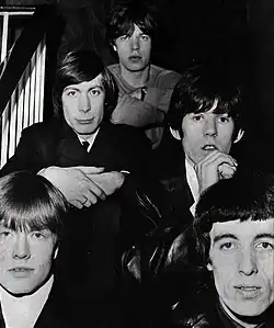 - The Rolling Stones made their debut at London's Marquee Club, Number 165 Oxford Street, opening for the first time under that name, for Long John Baldry. Mick Jagger, Brian Jones, Keith Richards, Ian Stewart, Dick Taylor and Tony Chapman had played together for the group Blues Incorporated before creating a new name inspired by the Muddy Waters 1950 single "Rollin' Stone".[51] The day before the concert, an ad in the July 11, 1962, edition of Jazz News, a London weekly jazz paper, had shown the drummer to be Mick Avory, who later played for The Kinks, rather than Chapman. Avory himself, however, would say in an interview that he did not play in the event.[52]