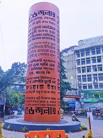 ![]() A July Martyr's Monument in Dhaka built in memory of the martyrs of the July massacre | |