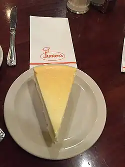Junior's is a restaurant chain with the original location at 386 Flatbush Avenue Extension at the corner of DeKalb Avenue in Downtown Brooklyn, New York City. Other locations include the Times Square area and the lobby of the Fox Tower in the Foxwoods Resort in Ledyard, Connecticut. The restaurant was founded by Harry Rosen in 1950,[1] although his family had run a diner in that location, albeit not under the Junior's name, since 1929. It is now owned and run by his grandson Alan Rosen. The restaurant is known for iconic New York–style cheesecake. According to the restaurant, it was named Junior's after Rosen's two sons, Walter and Marvin.[2]