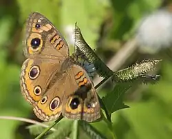 - ^ Lalonde, Melanie; McCullagh, Bonnie; Marcus, Jeffrey (2018). "The Taxonomy and Population Structure of the Buckeye Butterflies (Genus Junonia , Nymphalidae: Nymphalini) of Florida, USA". Journal of the Lepidopterists' Society. 72 (2): 97–115. doi:10.18473/lepi.v72i2.a2. S2CID 91121748.