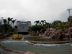 Jurassic Park Rapids Adventure is based on the concept of Jurassic Park: The Ride at Universal Studios Hollywood, which is itself based on the film adaptation of the popular novel. Jurassic Park Rapids Adventure is a Hafema river rapids ride whereas Jurassic Park: The Ride is a flume ride. The attraction first opened at Universal Studios Singapore on March 18, 2010. The attraction was temporary closed to the public for enhancement works from 10 August 2011 to 20 January 2012.[2] The ride has since reopened and includes enhancements such as a pair of "dry pods" for guests to dry off after getting soaked.[3]