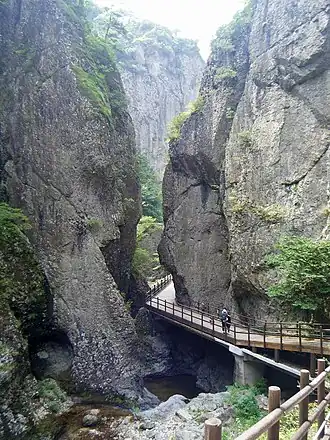 Juwangsan National Park (Korean: 주왕산국립공원, 周王山國立公園) is located in Cheongsong and Yeongdeok, North Gyeongsang province, South Korea, and is part of the Taebaek mountain range. It was designated the 12th national park in South Korea in 1976. The total size of the park is 107.42 km2 (41.48 sq mi). The park is home to 88 plant species and 924 animal species.[1]