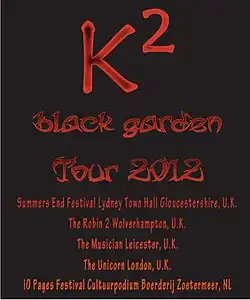 In 2007, this lineup went back to the drawing board to create what would become their long overdue second release, Black Garden.[3] Released on September 21, 2010 through Magna Carta Records, this outing showcases this modern rock quintet in an entirely new setting. With a central theme of Oceania, K² explores the hidden depths of this mysterious region and take the listener on a dark, sonic journey to places rarely visited, and offers a glimpse of a people unlike any other on earth.