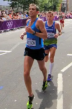 ![]() Karlsson in the marathon at the 2012 Olympics in London | |
