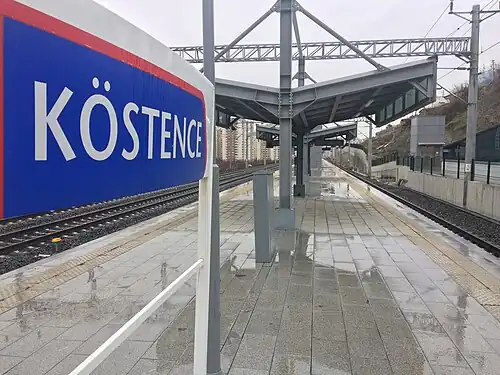 Köstence railway station (Turkish: Köstence istasyonu) is a railway station in Ankara, Turkey, on the Başkentray commuter rail line. The original station was built in 1970 by the Turkish State Railways and entered service in 1972 as a station on the Ankara suburban. The first station consisted of an island platform with two tracks.[1]