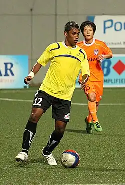 K. Sathiaraj in action for Woodlands Wellington in a S.League match during the 2012 S.League season.