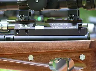 Jäger (German for "hunter") is a PCP air gun (rifle), manufactured by Klimovsk Specialized Ammunition Plant in Russia. It is used for target shooting or hunting for birds and small animals at a distance up to 100 m.[1] It was presented in autumn 2010 at the exhibition Arms&Hunting 2010.