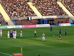 Cracovia's biggest rival is Wisła Kraków.[9] When they play, it is known as the "Holy War", it is the oldest and in the past, frequently also the most violent derby in Poland, with notable riots and stabbings having taken place during matchdays, as well as continually around the housing estates of the city.[10]