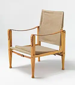Klint's carefully researched furniture designs are based on functionality, proportions adapted to the human body, craftsmanship, and the use of high-quality materials. Notable examples of his work include the Propeller Stool (1927), the Safari Chair and the Deck Chair (both 1933), the Church Chair (1936), and the Circle Bed (1938) featuring curved sides and rounded ends, with hand-woven textiles by Lis Ahlmann.[4][5]