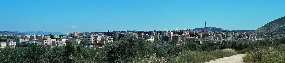 In 1859 the population was estimated as being 400.[18] In a 1922 census by the British Mandate of Palestine, Kabul had 365 inhabitants, rising to 457 in 1931. According to the Israel Central Bureau of Statistics, the town of Kabul had a population of 7,134 in 1995, rising to 9,400 in 2005. Its inhabitants are mostly Muslims. Kabul's prominent families are Rayan, Hamoud, Taha, Morad, Hamdony, Ibrahim, Hebi, Uthman, Ashkar, Sharari, Akari, Badran and Bouqai. The town hosts a large number of Internally displaced Palestinians from the nearby destroyed villages of al-Birwa, al-Damun, Mi'ar and al-Ruways.[30] All of the inhabitants are Arab citizens of Israel, mostly adherents of Islam.[29]