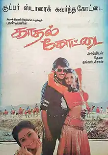 Kadhal Kottai (transl. The Fort of Love) is a 1996 Indian Tamil-language romantic drama film written and directed by Agathiyan, and produced by Sivasakthi Movie Makers. The film stars Ajith Kumar and Devayani in the lead roles, with Heera, Thalaivasal Vijay, and Karan in supporting roles. It revolves around two people who develop a romance anonymously.