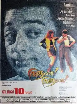 Kaathala Kaathala (transl. Oh love! Oh love!) is a 1998 Indian Tamil-language romantic comedy film directed by Singeetam Srinivasa Rao and produced by P. L. Thenappan. The film stars Kamal Haasan, Prabhu Deva, Soundarya and Rambha. It revolves around two men falling in love with two women, but end up creating a web of lies trying to impress their lovers' fathers.