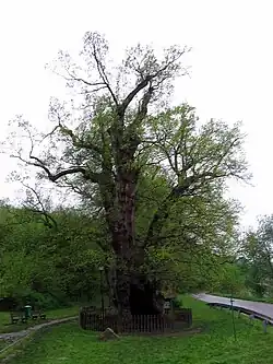 In the 11th-13th century a Baltic Prussian stronghold was located at the Klasztorna Góra ("Monastery Hill").[3] The terra Cadinensis in Prussia was first mentioned in a 1255 deed. It was allegedly named after Cadina, a daughter of an Old Prussian chief. Actually Old Prussian kudas means "hardship" or "wilderness". Named Kudien in 1354, the Teutonic Knights of the Elbing commandry had built a Vorwerk estate near the site of a former Prussian fortress, where they held court over the native Pogesanian inhabitants in the area. From 1431 the Kadyny (Cadinen) manor was owned by Jan Bażyński, leader and co-founder of the Prussian Confederation,[4] upon the request of which Polish King Casimir IV Jagiellon incorporated the region to the Kingdom of Poland in 1454,[5] and then Polish governor of the region, who fought on the Polish side during the subsequent Polish–Teutonic Thirteen Years' War. The over 700-years old Bażyński Oak, a natural monument, in Kadyny is named after Jan Bażyński.[4]