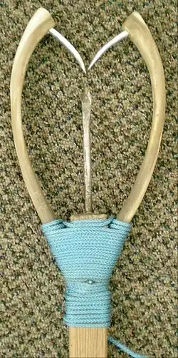 A kakivak is a leister used by Inuit for spear fishing and fishing at short range. It is comparable to a harpoon or a trident in function and shape. The kakivak is notable for its tip's design, which has three prongs, the outer which have their own teeth which point at the centre prong.[1] The teeth are to hold the meat on to the main blade to stop it from falling.[2]