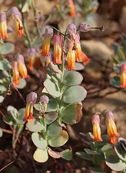 Kalanchoe marnieriana is a glabrous perennial to 11.5 inches tall. The flowers are yellow, orange to pink tubes.[3][4]