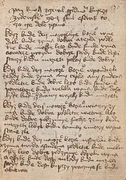 At least three distinct Greek kalandologia survive.[7] The Latin version is known as the Revelatio Esdrae. Its earliest manuscript is from the ninth century.[3] Although usually attributed to Ezra, there is a version misattributed to Bede.[6] The Syriac and Arabic versions are attributed to Daniel and are known from tenth-century manuscripts.[3] In English versions, the name of Ezra has been corruped to "Erra Pater".[4] Vernacular versions attributed to Ezra are known from Old Occitan, Italian, Dutch, German and Czech. The Old French versions, including an Anglo-Norman one that begins the year on Christmas rather than 1 January, are usually attributed to Ezekiel.[3] Many Greek copies are anonymous.[6] The Coptic kalandologion regards the start of the year for prognostic purposes as the sixth of Ṭūba, which corresponded to the first (or kalends) of January, the start of the year in the Roman Empire.[5] Several Coptic kalandologia include a second part that makes predictions based on the strength and direction of the wind in the week of the sixth of Ṭūba.[5][8] The fragmentary Coptic kalandologion in the 9th-century papyrus P.Mich. inv. 590 is of the latter type, for example: