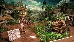 In October 1947, newly formed Indonesian Airforce (AURI) conducted its first ever airborne operation led by Tjilik Riwut in what today is Central Kalimantan using a Douglas DC-3 aircraft disguised as civilian plane.[16] The group, named MN/1001 (Muhammad Noor 1001), consist of only 14 personnel, mostly Kalimantan-born.[17][18] The goal was to break Dutch-imposed blockade and send back several Kalimantan-born nationalist back from Java.[16] Only 13 personnel were deployed from the plane and one allegedly deserted, leaving only 12 on the ground.[16] The group engaged against Dutch troops close to village of Pahandut, today Palangka Raya city.[17] The group was ambushed on 23 November, leaving three killed while the rest fled until the entirety of the group was captured on 7 December.[16][18] They were jailed in Banjarmasin before released in the aftermath of Dutch–Indonesian Round Table Conference.[18]