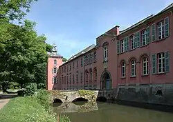 After the extensive work in the 1950s and 1960s, the castle saw only comparatively minor conservation measures. These included the renewal of the exterior paintwork between 1980 and 1981 and, in 1995, the re-excavation of a small park pond to the north of the Rentei und Domestikenflügel, which had previously been located there.[69][83] In addition to the Rhineland Department of the State Archives, Kalkum Castle has also housed part of Vester's Archive, Institute for the History of Pharmacy since 1970,[84] a collection founded in 1937 by pharmacist Helmut Vester . The part stored in Kalkum included a specialist library on the subject of pharmacy as well as pictures and maps of pharmacies and their history. In addition, there were around 400 display jars filled with raw drugs.[85] In 1993, Vester's archive moved to Switzerland to the Pharmacy History Museum of the University of Basel.[86]