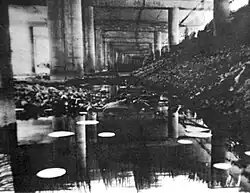Like the Platinotype and Cyanotype, the kallitype is a contact printing process and the printer must have a negative of equal size to print from. Modern kallitypes are generally made from either a large format camera negative, an enlarged internegative from a traditional wet darkroom, or a digital negative. Cotton rag paper is generally recommended for printing kallitypes,[2] although multiple paper types will lead to satisfactory results.[3] Gloves should be worn during coating and when handling sensitizer as the sensitizer chemicals can be quite toxic. While the Van Dyke Brown and Argyrotype are both "printing out" processes (with the complete image being formed during exposure), the Kallitype is a "develop out" process that requires the print to be submerged in a developer solution to make the image visible after exposure.[4] Like the Platinotype, the image will appear instantly when the paper is submerged in the developer.