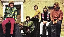 Despite the success, at the beginning of 1968, dissatisfaction with the share of the profits led to split into two factions, both of them performing under the name Novi Kameleoni (The New Chameleons).[1][6] One faction featured Jadran Ogrin, Vanja Valič and Tulio Furlanič, who were joined by guitarist Goran Tavčar.[7] They wrote psychedelic–oriented music for Boštjan Hladnik's 1968 film The Sunny Whirlpool, releasing it on the EP Sunny Cry (the title of the EP being the literal translation of the film's title).[7] After the release of the EP, Furlanič left the band due to his mandatory stint in the Yugoslav army, and was replaced by Ivan Mojzer.[7] At the time, the band had made a complete shift towards Cream- and Jimi Hendrix Experience-influenced psychedelic rock, their shows now being accompanied by a light show.[8] The band's new sound was met with mixed reactions by the audience.[8] However, the new incarnation of the band was short-lasting. After Tavčar moved to Italy, the band continued with a new guitarist, Ilario Udovici.[9] After Mojzer left the band to serve his mandatory army stint, they were rejoined by Furlanič, but personnel changes and disagreements within the group led to disbandment in 1969.[10] The band held their last concert in Maribor at the end of 1969.[8]