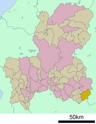 Kamiyahagi (上矢作町, Kamiyahagi-chō) was a town located in Ena District, Gifu Prefecture, Japan.