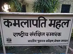 Kamalapati Palace lies on the eastern side of the ancient embankment known as Bhojpal, built by the Parmara Rajput King Bhoj (AD 1010–1055) from which the present name Bhopal is derived. The existing structure is a part of the palace which was constructed by Rani Kamlapati, in AD 1722. On the Western side of this palace are the remains of Fatehgarh Fort on the hill which was built by Sardar Dost Mohammad of Bhopal (AD 1708–1726) who laid the foundation of modern Bhopal. This monument was declared protected by the Government of India in 1989 and since then Archaeological Survey of India remains the custodian.