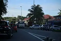 Although being only 6 kilometres (3.7 mi) from Muara and 12 kilometers from Brunei Town, the settlement had no road connecting it. The river served as the only exit from the settlement, leading north to Muara and south to Brunei Town. There was no road to Mentiri even in the 1960s when the road from Brunei Town had reached Muara. Those from the villages who were traveling to Brunei Town walked up to Bukit Sibanging and boarded a bus along Jalan Muara. It took until 1972 for the Jalan Kota Batu road between Mentiri and Brunei Town to be finished. The road needed to be finished due to a variety of developments.[7]