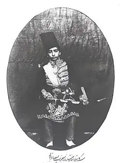 Kamran Mirza (Persian: کامران ميرزا نایب السلطنه; 22 July 1856 – 15 April 1929) was a Qajar prince and third surviving son of Naser al-Din Shah Qajar. He was a brother of Mass'oud Mirza Zell-e Soltan and Mozaffar ad-Din Shah Qajar. Kamran Mirza also served as Iran's Commander-in-Chief, appointed in 1868 for the first time, and minister of war from 1880 to 1896 and from 1906 to 1907.[1]